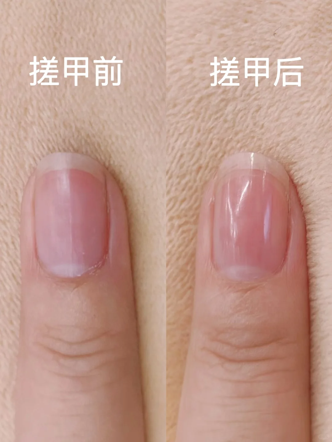 💅🏻裸色指甲油+磨砂封层;裸色微光泽指甲油;指甲搓条抛光